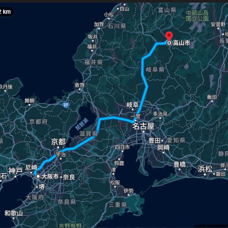 路線: 名神高速公路 → 東海北陸自動車道 → 高山IC